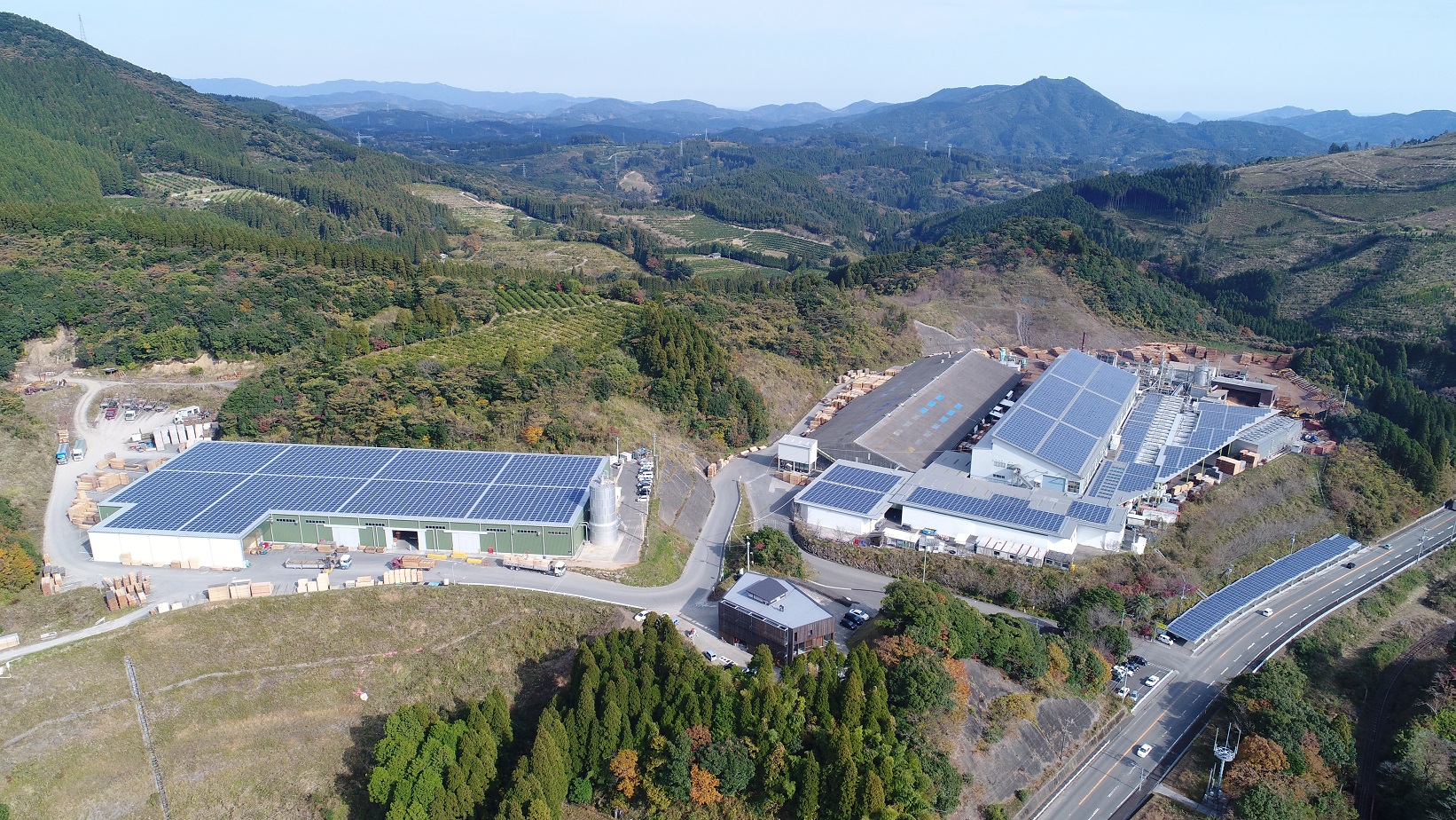 弊社は、地域資源の「飫肥杉」を中心に木材を加工し、住宅用部材・建築資材として全国各地へ販売しています。私たちの生まれる前から育まれた地域資源を有効活用するため、製品の加工時に出る端材やのこ屑まで余すことなく利用しています。